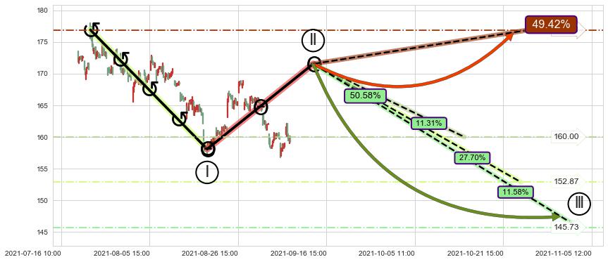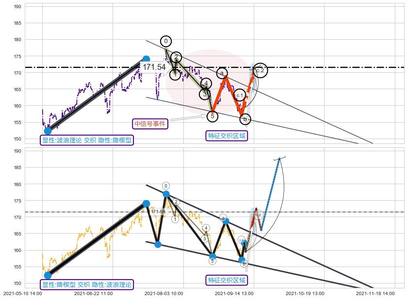 ➢ 循环浪继续向下【最高】位置(10-14:11, 160.00),匹配聚类样本比例22.36%, 可能性概率11.31%