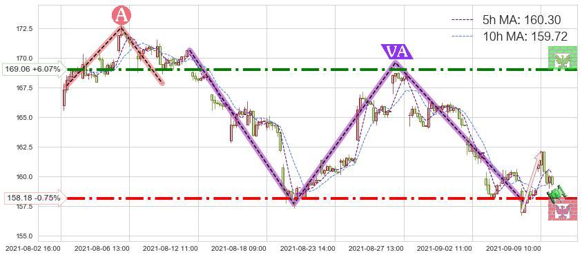 ♘ 阻力价格位169.06,可信任强度79.28%,距离最后交易2021-09-09 14:00形成的收盘价格159.38相差 +6.07%