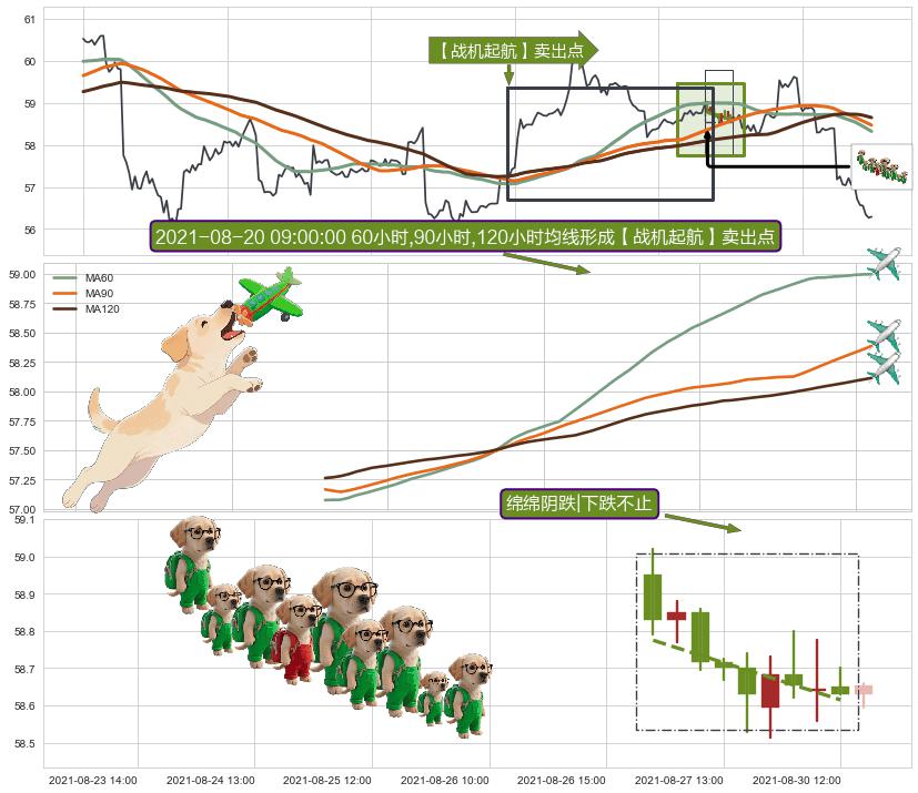 从2021-08-09 13:00至2021-08-24 09:00,共包含67个小时,阶段股价上涨3.83%,阶段股价变动位移路程比: 1 : 4