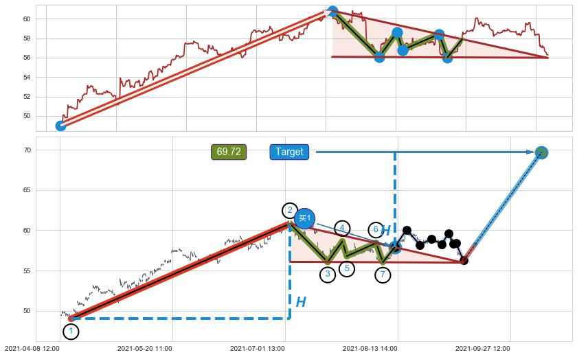 ➣ AI预测: 假定反转启动后, 第❶目标位置(10-11:13, 56.95)