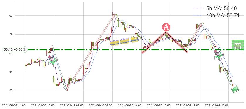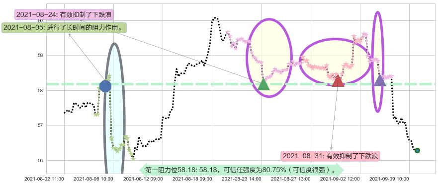2021-08-31: 第一阻力位58.18有效抑制了下跌浪,成功阻止了价格的继续下跌。