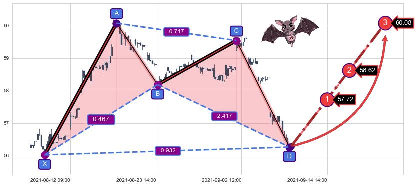 ➣ 已完成【蝙蝠】形态起点X: 08-09:13, 终点D: 09-09:13, 共144交易小时