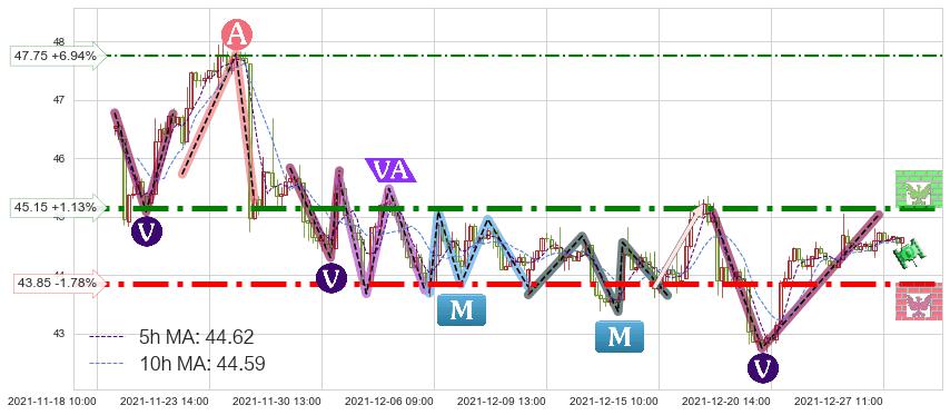 ♘ 阻力价格位45.15,可信任强度92.11%,距离最后交易2021-12-27 15:00形成的收盘价格44.65相差 +1.13%