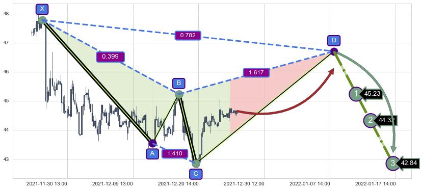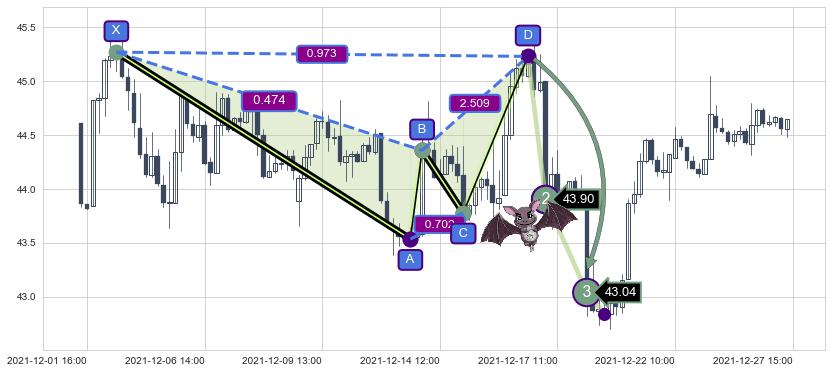 ➣ 已完成【蝙蝠】形态起点X: 12-02:13, 终点D: 12-16:13, 共71交易小时