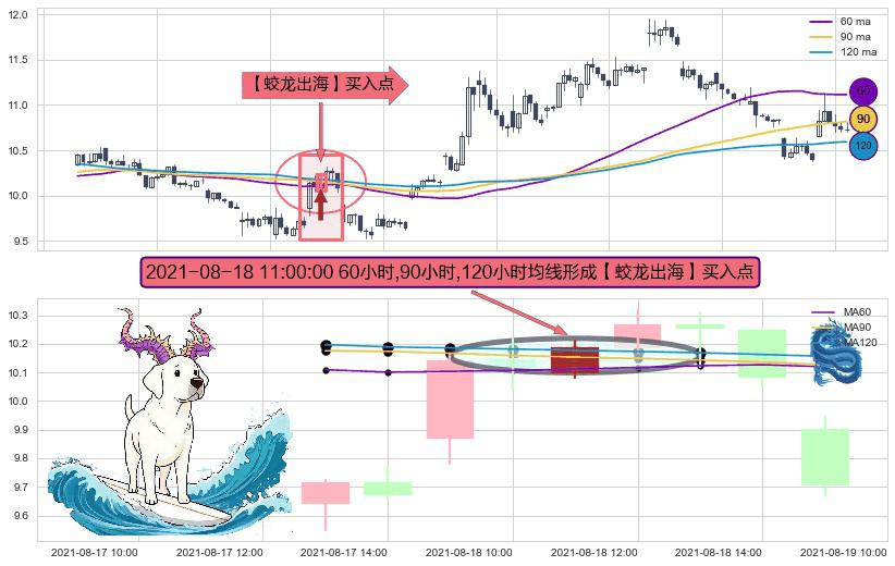 ⚀ 2021-08-18 11:00:00小时显现 60小时-90小时-120小时均线 【蛟龙出海】买入点 看多信号,后市看涨,买入