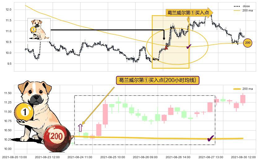 ⚀ 2021-08-24 09:00:00-小时显现 葛兰威尔均线 200小时均线 第买①入点 走势反转见底信号,后市看涨,买进信号