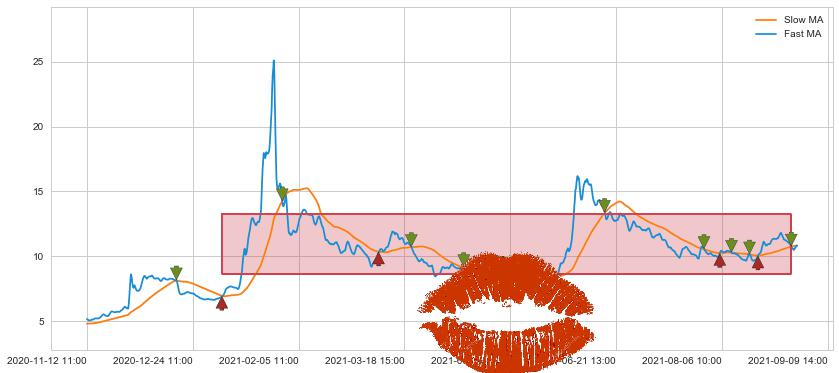 ⚅ 买点向上突破均线后,价格走势很纠结,不断在均线周围试探,有再次下探破位均线的可能
