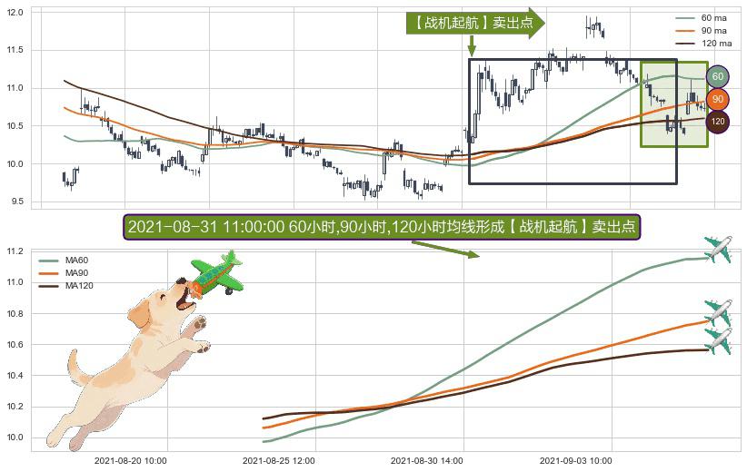 ⚀ 2021-08-24 11:00:00小时-2021-09-08 11:00:00小时显现 60小时-90小时-120小时均线 【战机起航】卖出点 看空信号,后市看跌,卖出