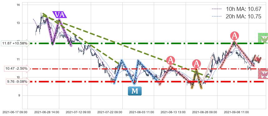 ♘ 支撑价格位10.47,可信任强度57.76%,距离最后交易2021-09-09 14:00形成的收盘价格10.73相差 -2.50%