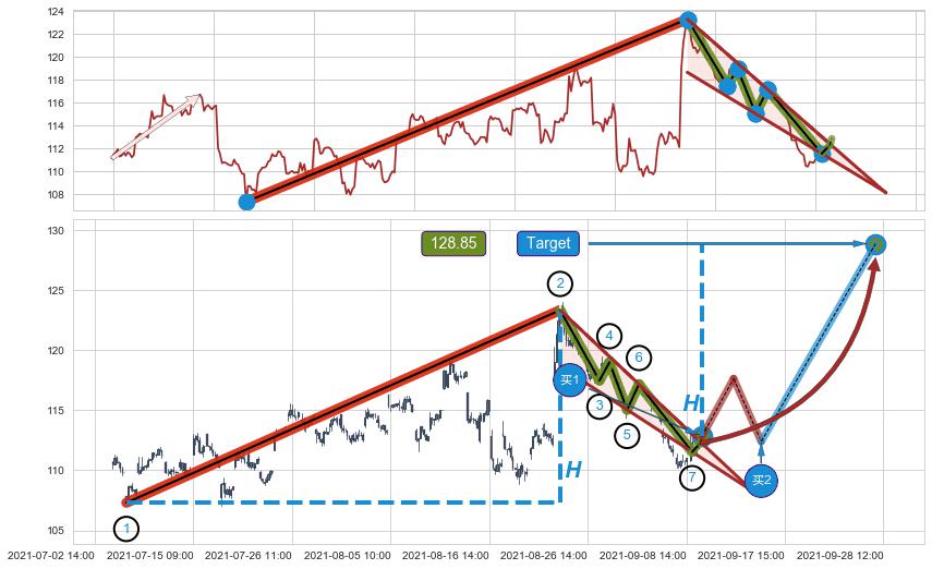➣ 【仅预测突破】最后价格:112.26与预测突破价格:112.83→【空间临近】后续最小【整理】第一目标价格→(09-28:12: 128.85 )
