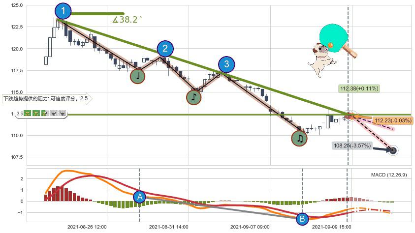 ➢ 预测:2021-09-09 15:00,【试探阻力】稳定目前下跌趋势的前提下,预测价格:112.23