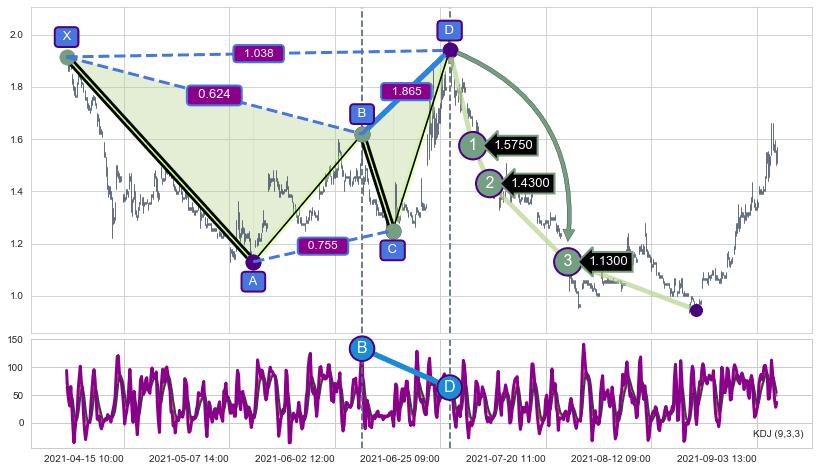 ➢ 谐波价格D点比B点高 ⤴,【KDJ】指标D点比B点低 ⤵️