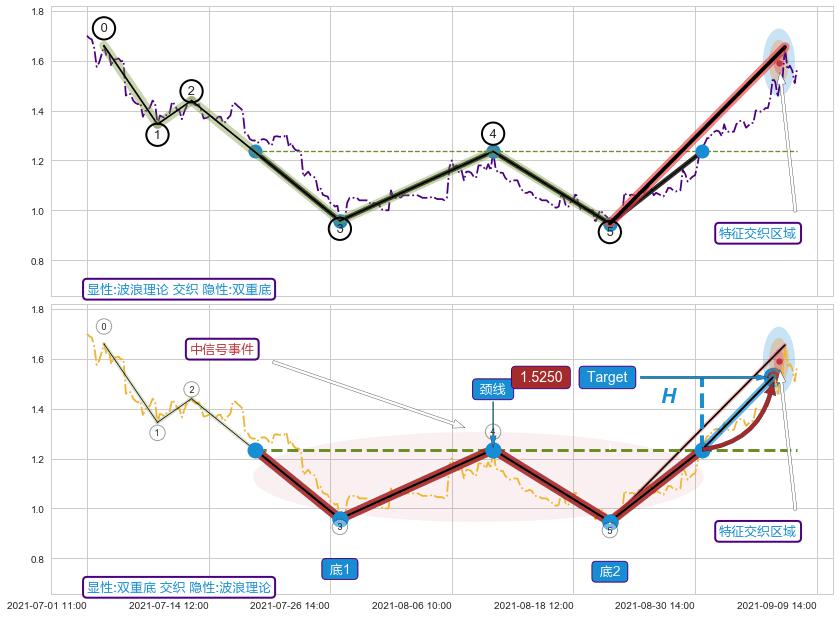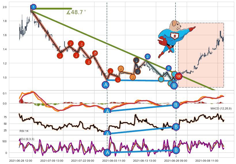 ➢ 最后的下跌趋势2021-06-28 11:00至2021-08-25 12:00:存在突破迹象,后续小反弹或者反转上涨