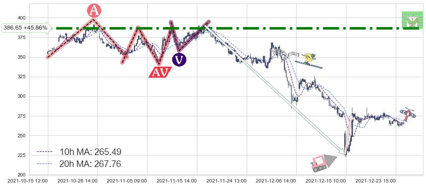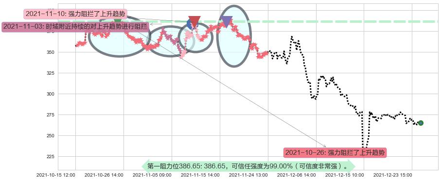 ♘ 阻力价格位386.65,可信任强度99.00%,距离最后交易2021-12-27 16:00形成的收盘价格265.09相差 +45.86%