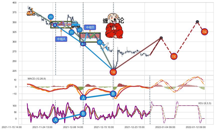 | 2 🅚:【高山滑雪】买入点 ➕ ☯️:缠论买卖点下降缠中枢AB形成后猜想拐点1买已到达,猜想后续持续拉升(均值回复) ☞ 看多信号 ⇥ 【均线】交织【图形】⇥ 综合量化分数: 52 | > |