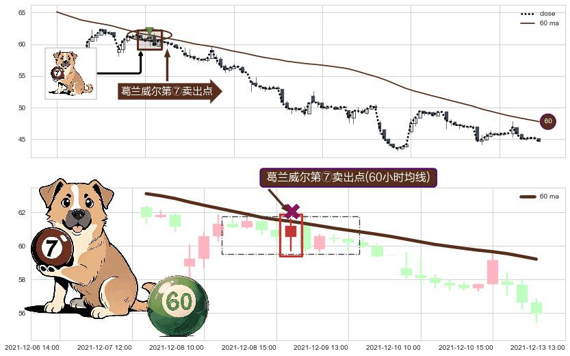 ⚀ 2021-12-09 09:00:00-小时显现 葛兰威尔均线 60小时均线 第⑦卖出点 下降趋势的中继信号,后市看跌,卖出信号