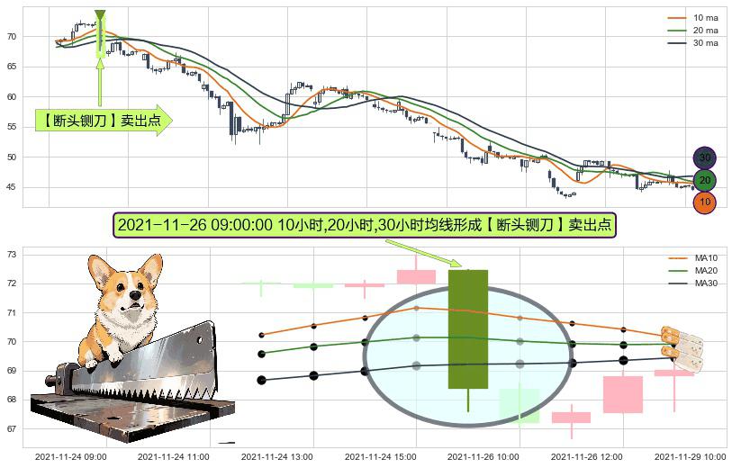 ⚀ 2021-11-26 09:00:00小时显现 10小时-20小时-30小时均线 【断头铡刀】卖出点 看空信号,后市看跌,卖出