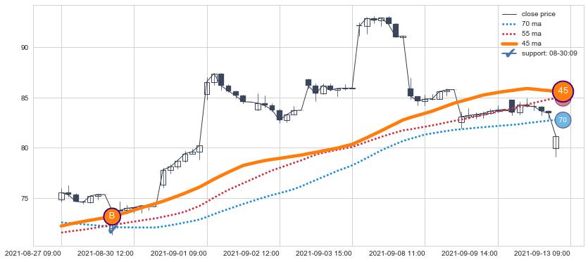 ➢ 发现最优均线组合: 45 , 55 , 70