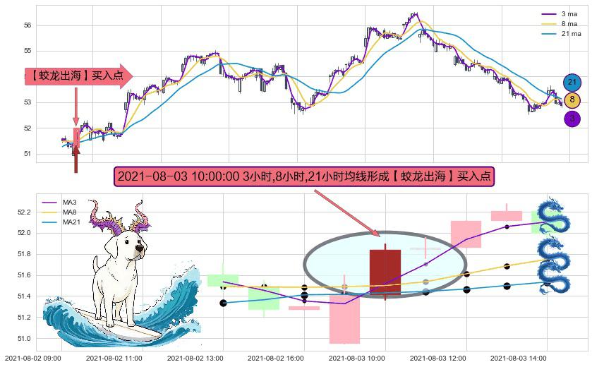 形态多维评估: ⚀ 2021-08-03 10:00:00小时显现 3小时-8小时-21小时均线 【蛟龙出海】买入点 看多信号,后市看涨,买入