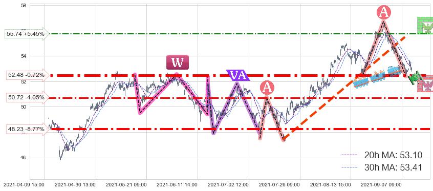 ♘ 支撑价格位52.48,可信任强度88.07%,距离最后交易2021-09-09 14:00形成的收盘价格52.86相差 -0.72%
