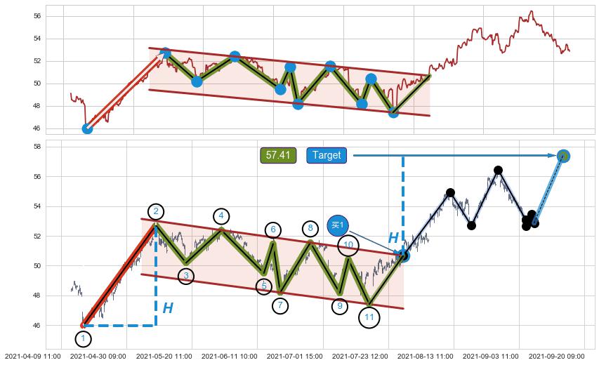 ➣ 最小中继整理涨幅→𝐇: 6.73 (𝐇旗杆的长度:旗杆起点→顶点)