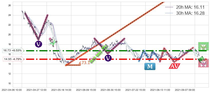 ♞ 20小时均线:16.11,30小时均线:16.28→ 快线<慢线
