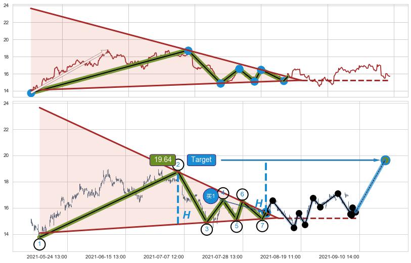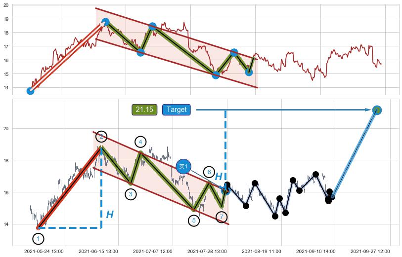 ➣ D点拟合预测价格18.04,距离最后交易收盘价格15.70相差 +14.89%