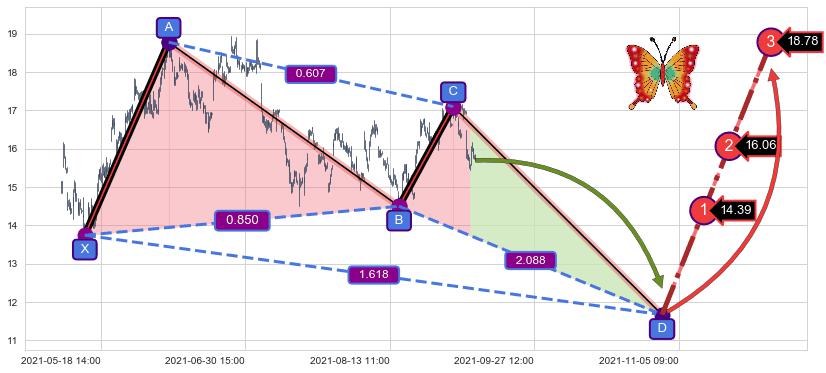 ➣ 未完成【蝴蝶】形态起点X: 05-13:12, 已到达C点: 09-02:10, 预测最终D点: 11-01:14, 共792交易小时