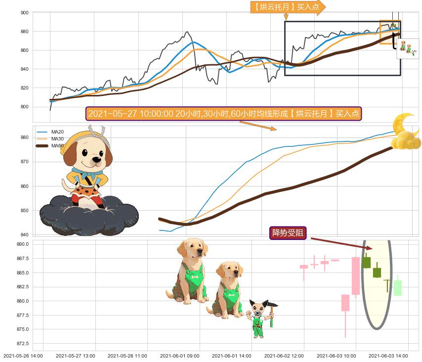 ➣ 收盘价(06-01:12: 877.26 )→回踩→第一根k线高点(05-28:15: 878.06 )