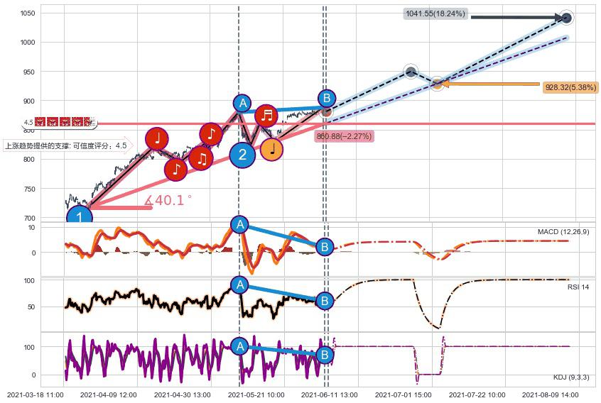 ➣ 预测:2021-07-05 12:00,【试探支撑】稳定目前上涨趋势的前提下,预测价格:928.32