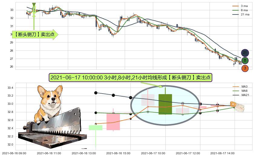 ⚀ 2021-06-17 10:00:00小时显现 3小时-8小时-21小时均线 【断头铡刀】卖出点 看空信号,后市看跌,卖出