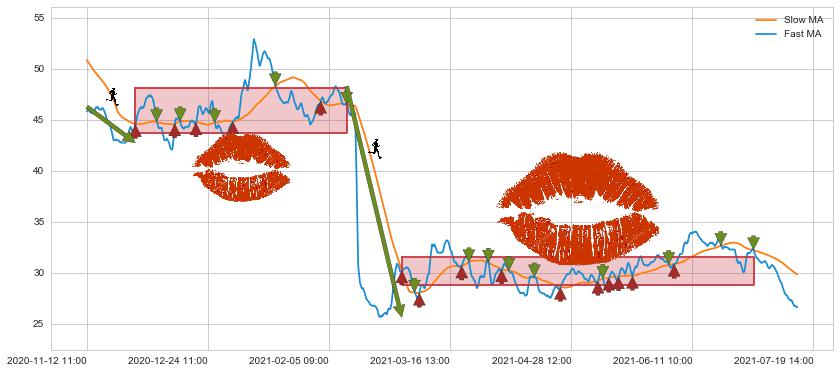 ⚂ 【死亡谷】卖出点长时间对 牛 市转 熊 市进行确认,且均线压制价格走势,但信号发出时间较长,属于【迟滞】看空卖出信号