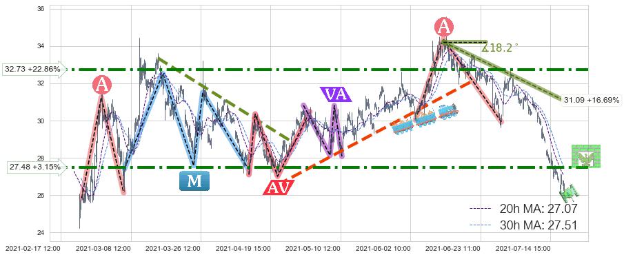♞ 20小时均线:27.07,30小时均线:27.51→ 快线<慢线