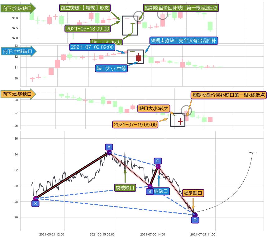 ➢ 2021-07-19 09:00形成:向下跳空【竭尽】缺口