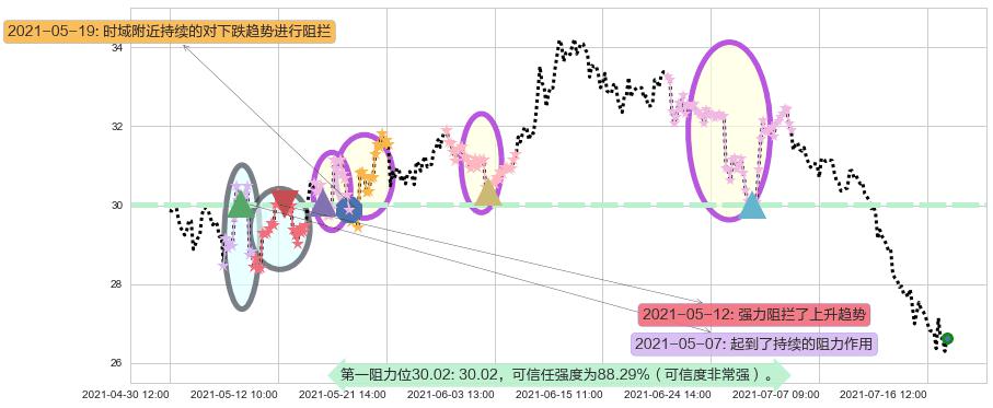 ♘ 阻力价格位30.02,可信任强度88.29%,距离最后交易2021-07-19 14:00形成的收盘价格26.64相差 +12.68%