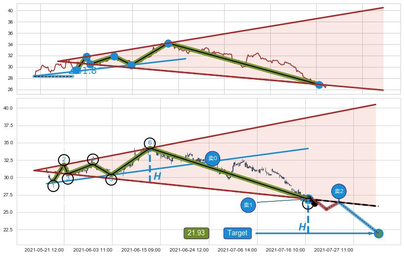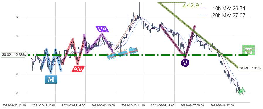 2021-05-19: 时域附近第一阻力位30.02持续的对下跌趋势进行阻拦,有效地放缓了下跌的速度。