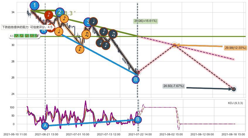 ➢ 预测:2021-07-30 10:00,【小幅反弹】稳定目前下跌趋势的前提下,预测价格:29.98