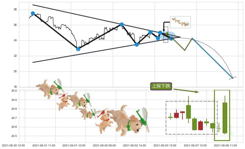 ➣ 【仅预测突破】最后价格:24.32与预测突破价格:24.23→【空间临近】后续最小【整理】第一目标价格→(10-05:15: 19.09 )