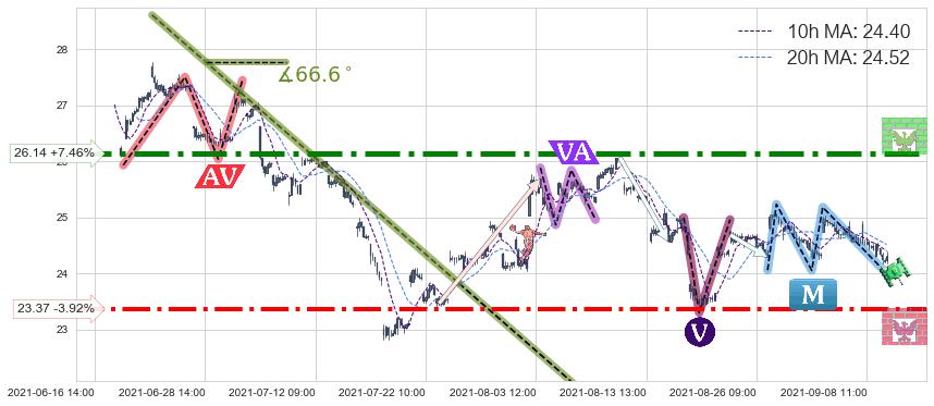 ➣ 【已确认突破】最后价格:24.32与最小【整理】第一目标价格→(09-17:10: 20.99 )相较: 下跌空间【中等】