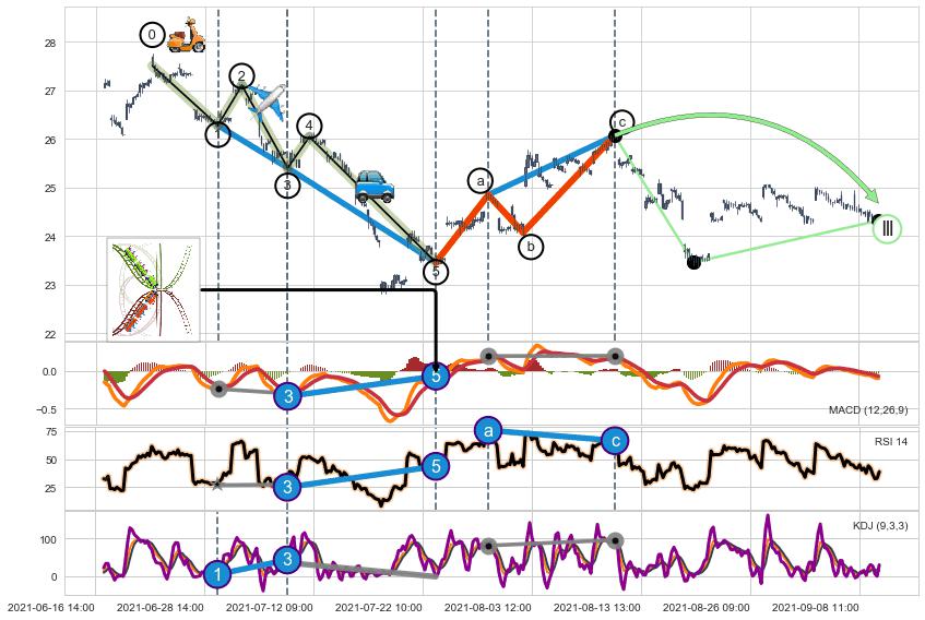 ➢ 1,3,5驱动浪MACD, RSI, KDJ走势都出现【常规背离】反转信号增强