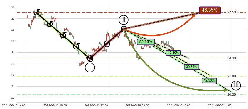 ➣ 循环浪继续向下【平均值】位置(09-27:12, 21.88),匹配聚类样本比例56.57%, 可能性概率30.35%