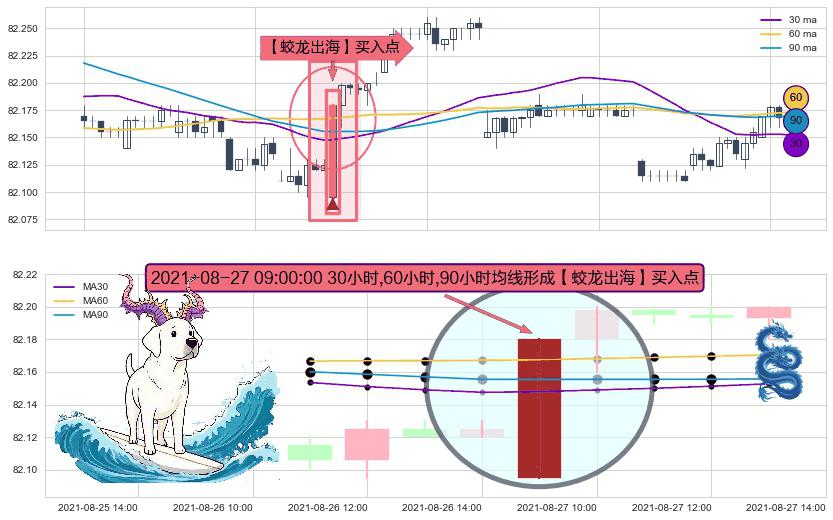 形态多维评估: ⚀ 2021-08-27 09:00:00小时显现 30小时-60小时-90小时均线 【蛟龙出海】买入点 看多信号,后市看涨,买入