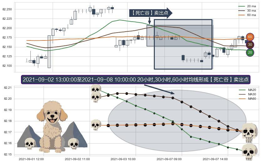 形态多维评估: ⚀ 2021-09-02 14:00:00-小时至2021-09-08 10:00:00-小时显现 20小时-30小时-60小时均线 【死亡谷】卖出点 看空信号,后市看跌,卖出