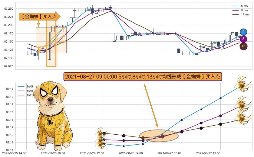 形态多维评估: ⚀ 2021-08-27 09:00:00小时显现 5小时-8小时-13小时均线 【金蜘蛛】买入点 看多信号,后市看涨,买入