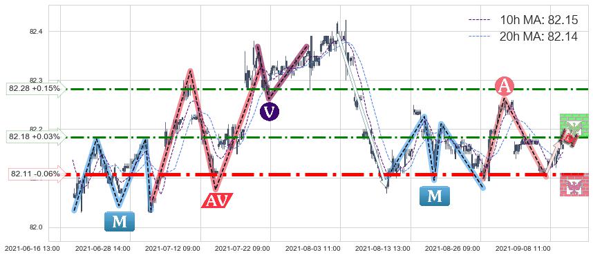 ♞ 10小时均线:82.15,20小时均线:82.14→ 快线>慢线