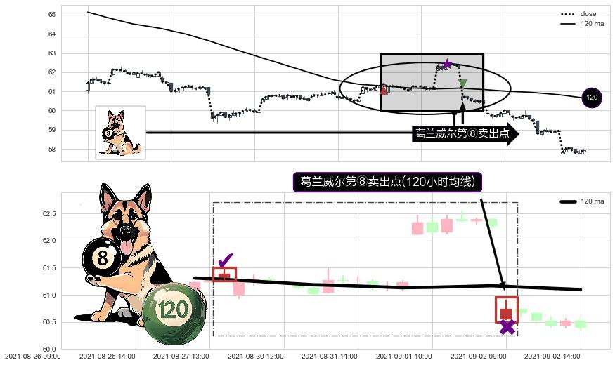 形态多维评估: ⚀ 2021-09-02 09:00:00-小时显现 葛兰威尔均线 120小时均线 第⑧卖出点 下降趋势的中继信号,后市看跌,卖出信号