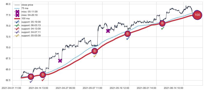 上涨趋势04-01 11:00-06-17 11:00,均线100确认关键支撑5处