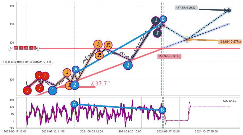 ➣ 预测:2021-10-14 11:00,【继续上扬】稳定目前上涨趋势的前提下,预测价格:137.53
