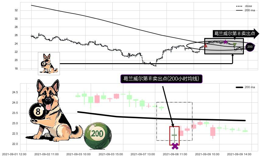 形态多维评估: ⚀ 2021-09-08 09:00:00-小时显现 葛兰威尔均线 200小时均线 第⑧卖出点 下降趋势的中继信号,后市看跌,卖出信号