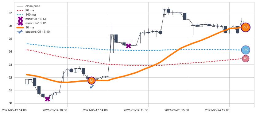 上涨趋势05-12 14:00-05-25 09:00,均线30确认关键支撑1处